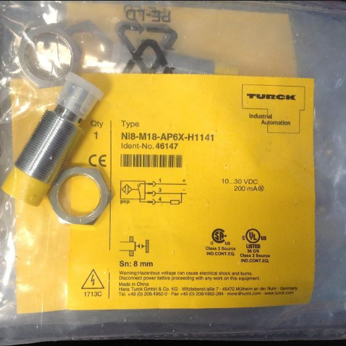TURCK图尔克 Ni8-M18-AP6X-H1141 全新电感式接近开关介绍:- 检测能力:这是一款电感式接近开关,能对金属物体进行非接触式检测,检测距离为 8mm,可准确感应目标物体的接近,为工业自动化控制系统提供可靠的位置检测信号。